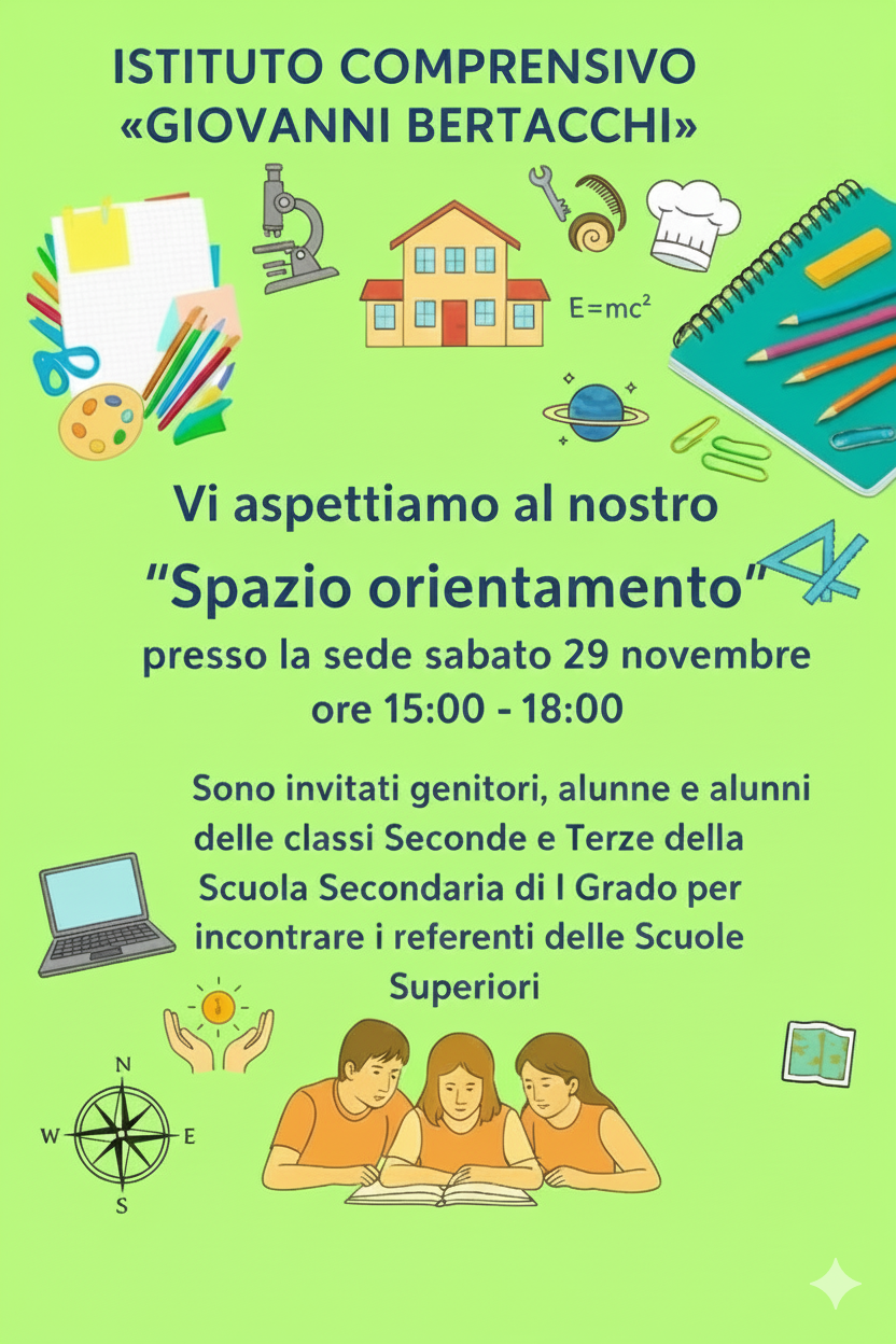 Documenti PROGETTO+ORIENTAMENTO+2025_2026.pdf Documento+Regionale+Orientamento+2025_2026+(1).pdf Evento di orientamento per i genitori.pdf Ballerini+Morbegno.png.pdf Orientamento in Entrata I.I.S. “Leonardo da Vinci” Chiavenna .pdf INCONTRO CLASSI TERZE CON I.P. CROTTO CAURGA DEL 24 OTTOBRE 2025.pdf Locandina_Incontro_Artigiani_Commercianti.pdf Incontro con rappresentanti dell’Unione Artigiani e Commercianti 23 ottobre 2025.pdf Salone Orientamento Morbegno dal 29 al 31 ottobre.pdf PROGRAMMA CONVEGNO Scegliere IntelligenteMente 2025.pdf BESTA FOSSATI ORIENTAMENTO.pdf OFFERTA FORMATIVA DE SIMONI 2025_26.pdf ORIENTAMENTO ENAIP.pdf Lettera Ministro Valditara 4-11-2025.pdf Locandina Spazio Orientamento 29.11.2025.png Avviso serata conclusiva Sol.Co..pdf Circolare n.161 Orientamento OPEN LABsabato 13.12.2025 IIS Marco Polo.pdf